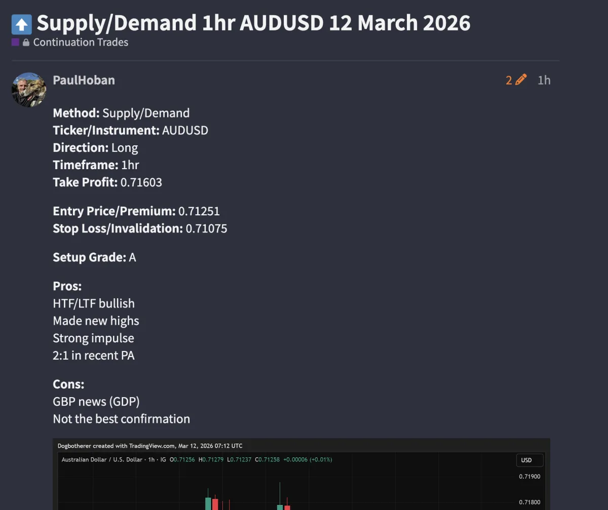 When you join, you don’t just get courses and theory. You get access to the environment where trades are actually being posted by students in real time, including demo and live execution.